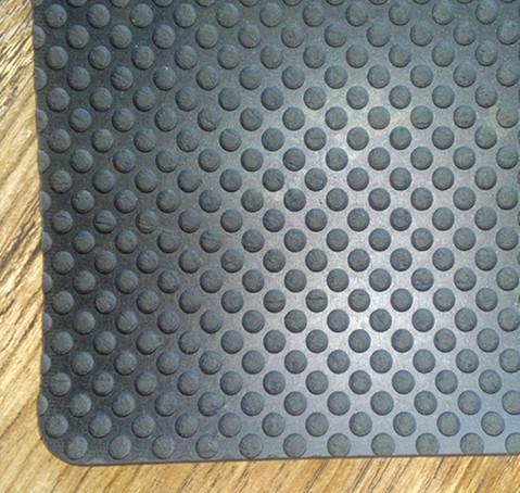 圓凸點防滑橡膠覆膜最高寬度可達1.5米,最厚達6mm。其生產(chǎn)工藝是以凸點式防滑原理,橡膠表面以圓點向外凸出,防止人員不小心突然跌倒。